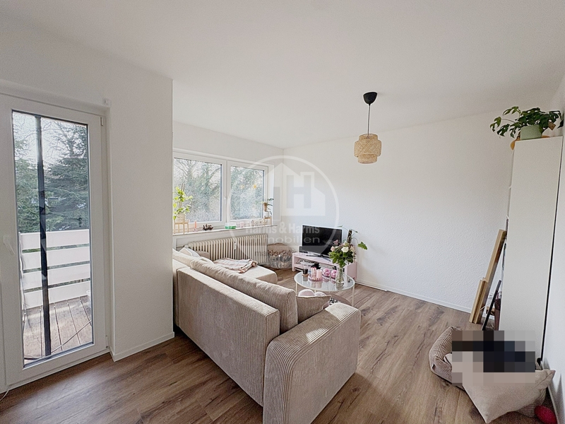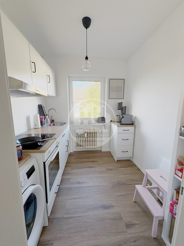 Wohnzimmer, Küche, 2 Zimmer, Duschbad, Abstellraum, Flur und Balkon.
